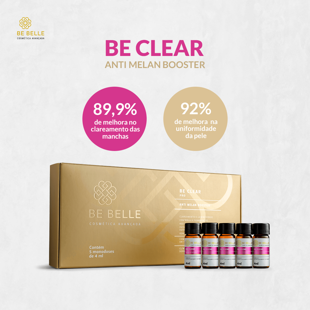 Be Clear - Anti Melan Booster é um tratamento com monodoses que reduzem a hiperpigmentação e uniformizam o tom de pele.